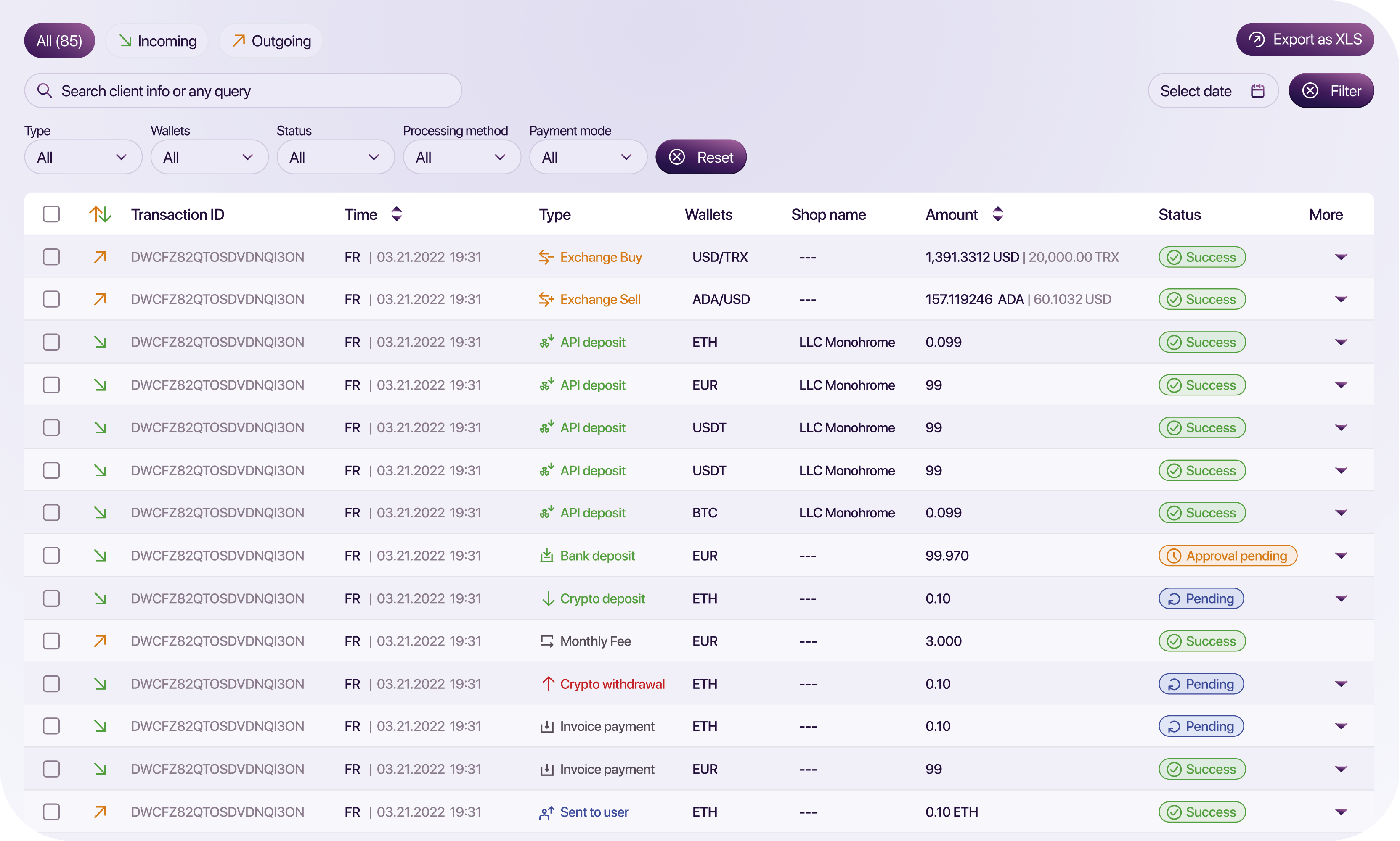 Our exchange service supports 30+ assets with deep liquidity, enabling seamless cross-border transactions in the currency of your choice – whether you need local fiat payouts or crypto-to-crypto conversions. All exchanges include real-rate locking and complete transaction transparency.